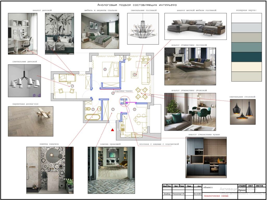 The technical part of the project. Layout- redevelopment plans, Furniture arrangements, Floor plans